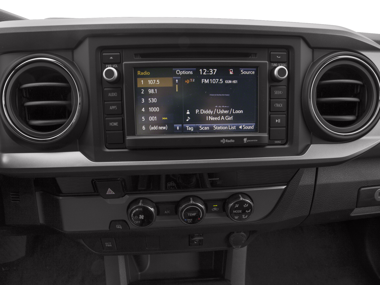 - Radio: Entune Plus AM/FM/CD w/Connected Navigation -inc: 6 speakers, 6.1" high-resolution touch-screen display, auxiliary audio jack, USB 2.0 port, iPod connectivity and control, advanced voice recognition, Bluetooth® hands-free phone capability, phone book access and music streaming, Connected Navigation Scout GPS Link App, Siri eyes free, SiriusXM satellite radio w/complimentary SiriusXM All Access 90-day trial subscription included, HD Radio, HD traffic and weather