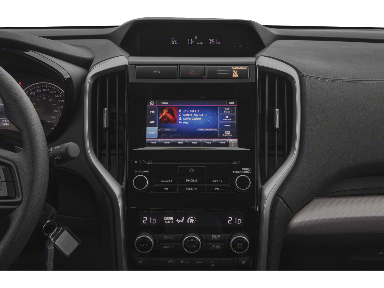 - Radio: Subaru STARLINK 6.5" Multimedia Plus System -inc: AM/FM stereo HD Radio w/single disc CD player, MP3/WMA/CRR/RW file capability, multi-touch gesture high resolution display screen, voice activated controls, Bluetooth® audio streaming and hands-free phone connectivity (refer to subaru.com for cell phone compatibility), Bluetooth® hands-free SMS text messaging connectivity (refer to subaru.com for cell phone compatibility), iPod control capability, SiriusXM All Access radio (4 months free trial/subscription required after), SiriusXM Travel Link (4 months free trial/subscription required after), smartphone integration for Aha, Android Auto, Apple CarPlay, Pandora and STARLINK cloud applications, USB audio system update, steering wheel controls for audio and Bluetooth®, 6 speakers, 3.5mm auxiliary input jack and front and rear dual USB ports